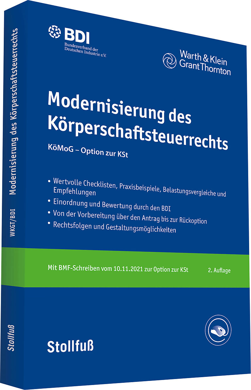 Die zweite Auflage des Ratgebers stellt unter Beachtung des BMF-Schreibens v. 10.11.2021 das neue Optionsmodell vor und zeigt anhand von Belastungsvergleichen die Vor- und Nachteile einer Option auf, weist auf Alternativen zur Option hin und begleitet den Leser mit Beratungsempfehlungen und Checklisten von der Vorbereitung über die Antragstellung bis hin zu den Rechtsfolgen nach der Option. Auch auf die Möglichkeit der Rückoption wird ausführlich eingegangen. Mit der zweiten Auflage des Ratgebers werden praxisrelevante Fragestellungen wie der Nachweis der persönlichen Voraussetzungen für die Option, die Bekanntgabe von Verwaltungsakten und die Haftung für Steuerschulden genauer beleuchtet. Ebenso wirft das Autorenteam einen Blick auf die Voraussetzungen und Folgen des Ein- und Austritts eines Gesellschafters in bzw. aus der optierenden Gesellschaft.