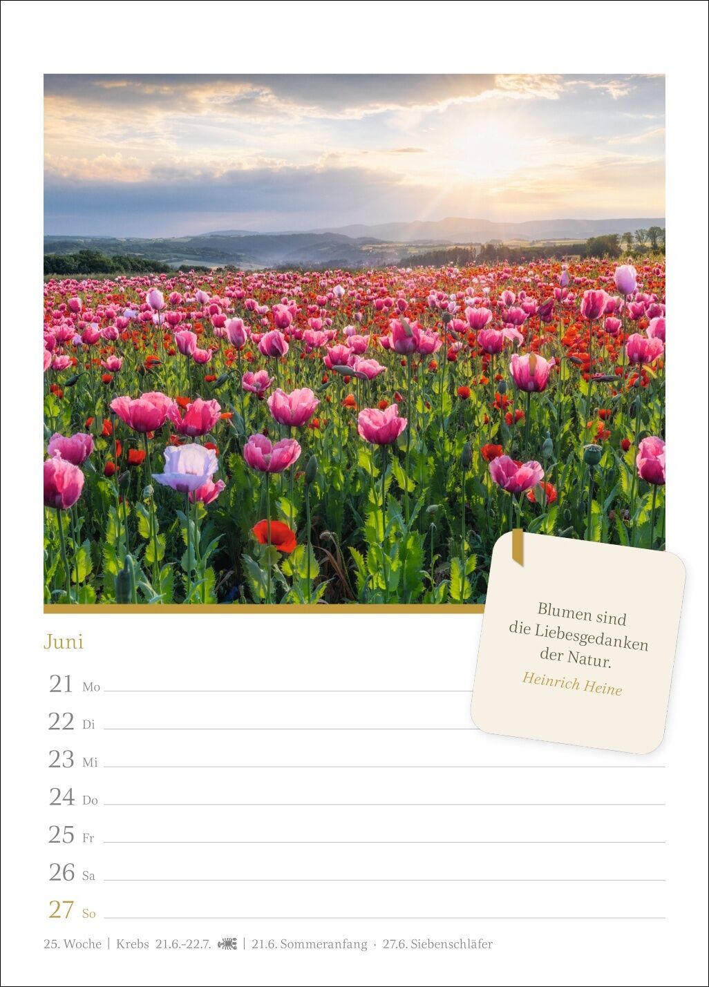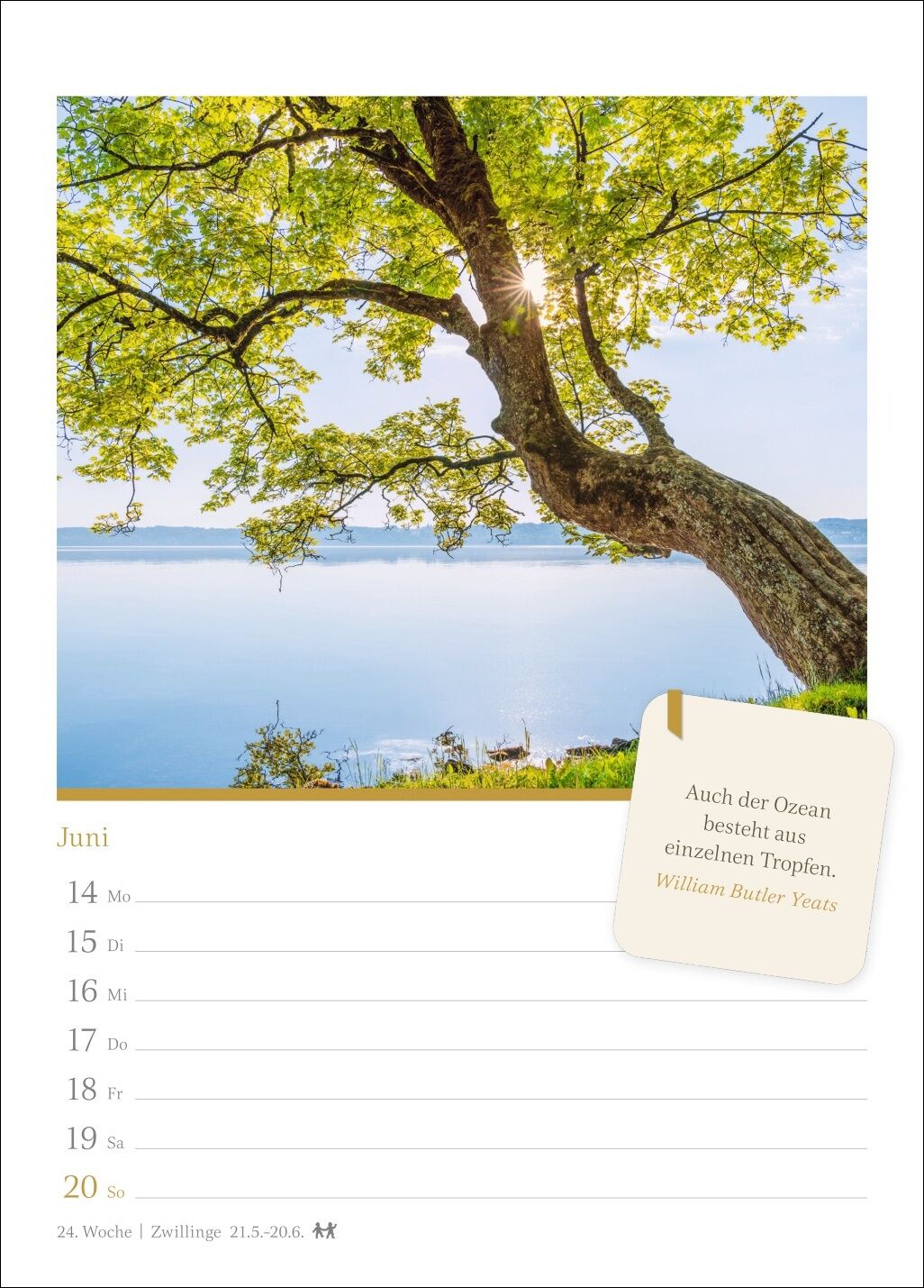 Ein bisschen Gelassenheit im Alltag und sich trotz vollen Terminkalenders Momente der Ruhe gönnen: Dazu regt dieser Wochenkalender mit schönen Bildern und motivierenden Worten an - Die Schönheit der Natur in hochwertigen Bildern: Fotokunst, die wahre Augenbl...