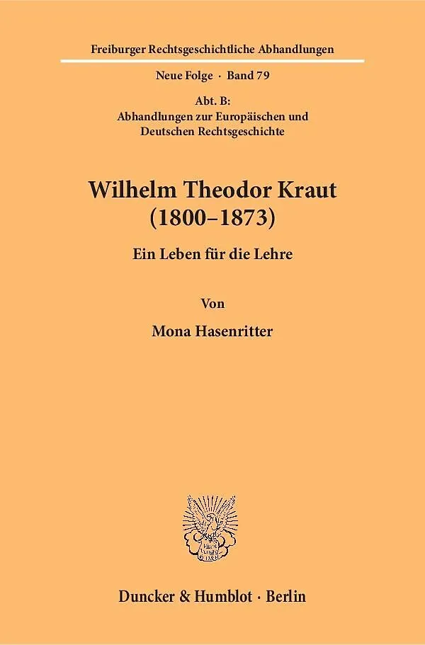 Die Arbeit stellt Biographie und wissenschaftliches Werk des juristischen Germanisten Wilhelm Theodor Kraut vor, der an der Göttinger Universität insbesondere zum Deutschen Privatrecht lehrte. Im Zentrum der Studie steht die Transkription und Edition einer Nac...