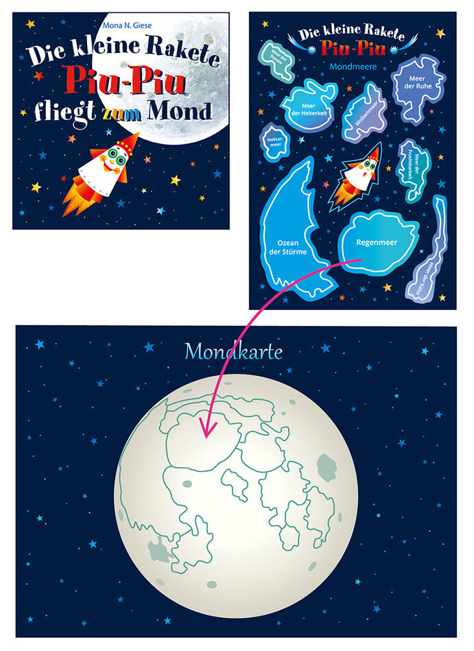 Das Set enthält neben dem Buch "Die kleine Rakete Piu-Piu fliegt zum Mond" eine Mondkarte und einen Aufkleberbogen mit Mondmeeren. Nach dem lesen bekommt das Kind eine Aufgabe: die Mondmeere aud die Mondkarte aufkleben. Das Set enthält: 1 Buch, Größe: 12 x 12 ...