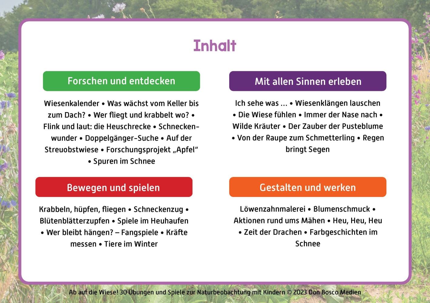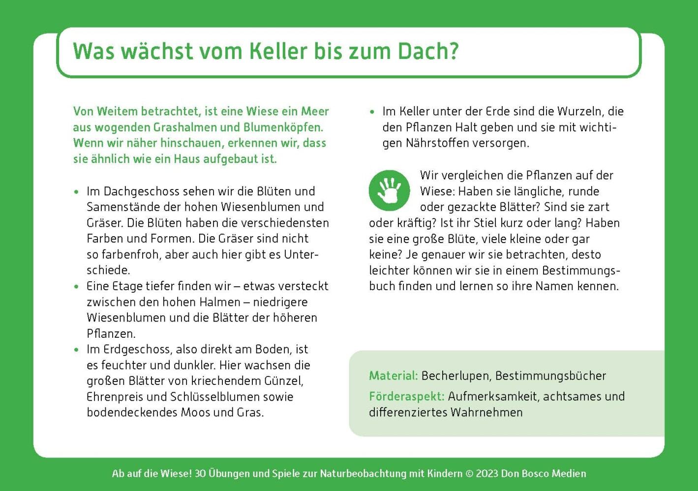 Gemeinsam die Natur entdecken: Kindergarten- und Grundschulkinder erforschen den Lebensraum Wiese. Bildkarten mit 30 Aktivitäten für Ausflüge und Projekte. Was wächst und raschelt da? Pflanzen und Tiere auf der Wiese kennenlernen Hohes Gras, der Duft aus zahlr...