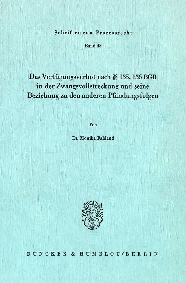 Das Verfügungsverbot nach §§ 135, 136 BGB in der Zwangsvollstreckung und seine Beziehung zu den anderen Pfändungsfolgen.