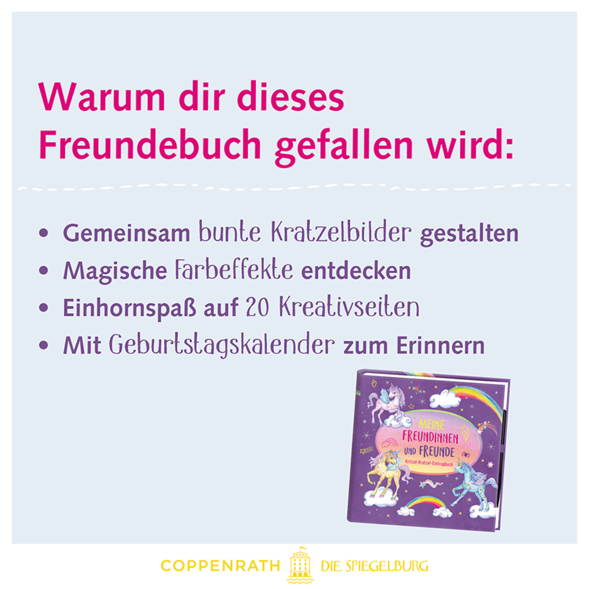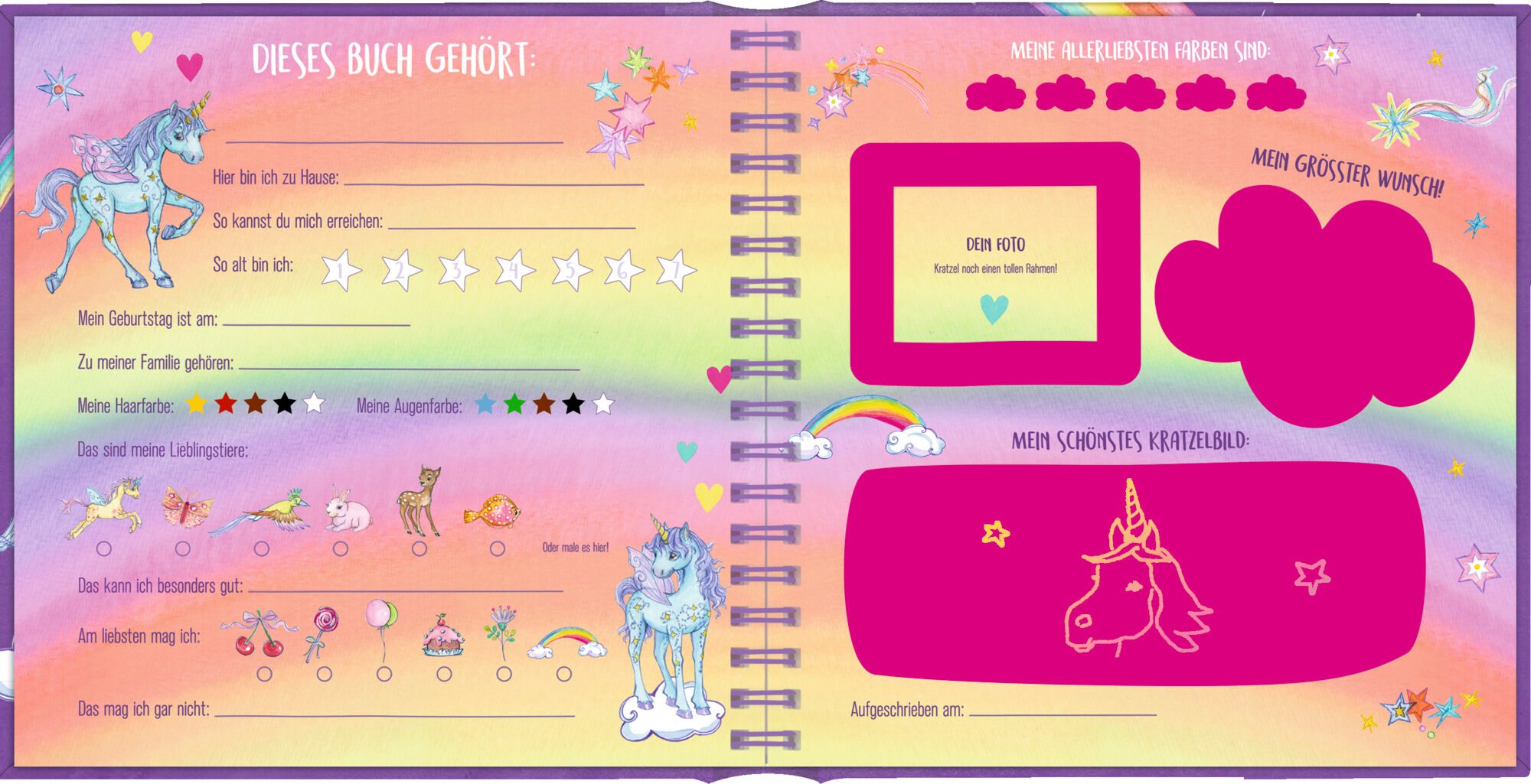 Ein zauberhafter Kritzel-Kratzel-Eintragspaß! In diesem besonderen Freundebuch haben alle Freunde die Gelegenheit, sich mit bunten Kratzelbildern unvergesslich zu verewigen. Der beiliegende Stift zaubert faszinierende Farbeffekte auf die Seiten, die jedes Kun...