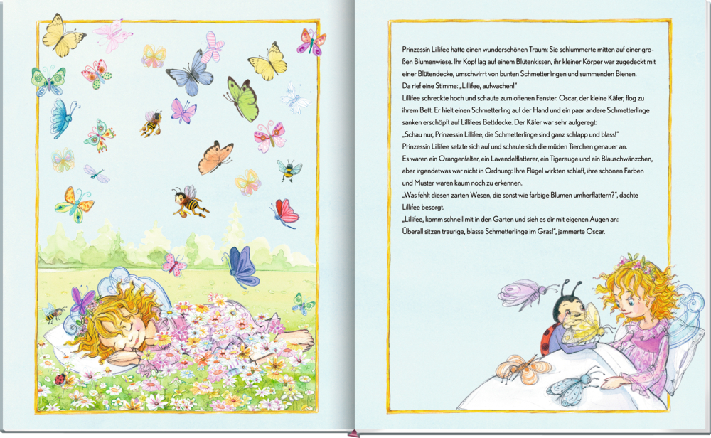 Gerade hat Prinzessin Lillifee noch schön geträumt, da wird sie vom aufgeregten Käfer Oscar geweckt. Überall im Schlossgarten sitzen blasse, erschöpfte Schmetterlinge. Und kein Zauber von Prinzessin Lillifee scheint zu helfen! Doch der kleine Käfer erinnert s...
