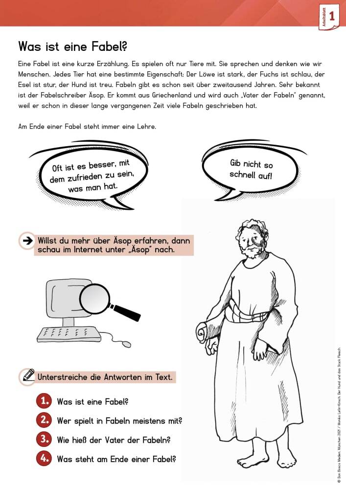 Äsops Fabel vom gierigen Hund. Unterrichtsmaterial Fabeln in der Grundschule: ein einfacher Zugang zu Äsops zeitlosen Geschichten Der große Hund ist ein gemeiner Kerl: Als er einen kleinen Hund mit einem Stück Fleisch sieht, jagt er es ihm ab und ist auch noch...