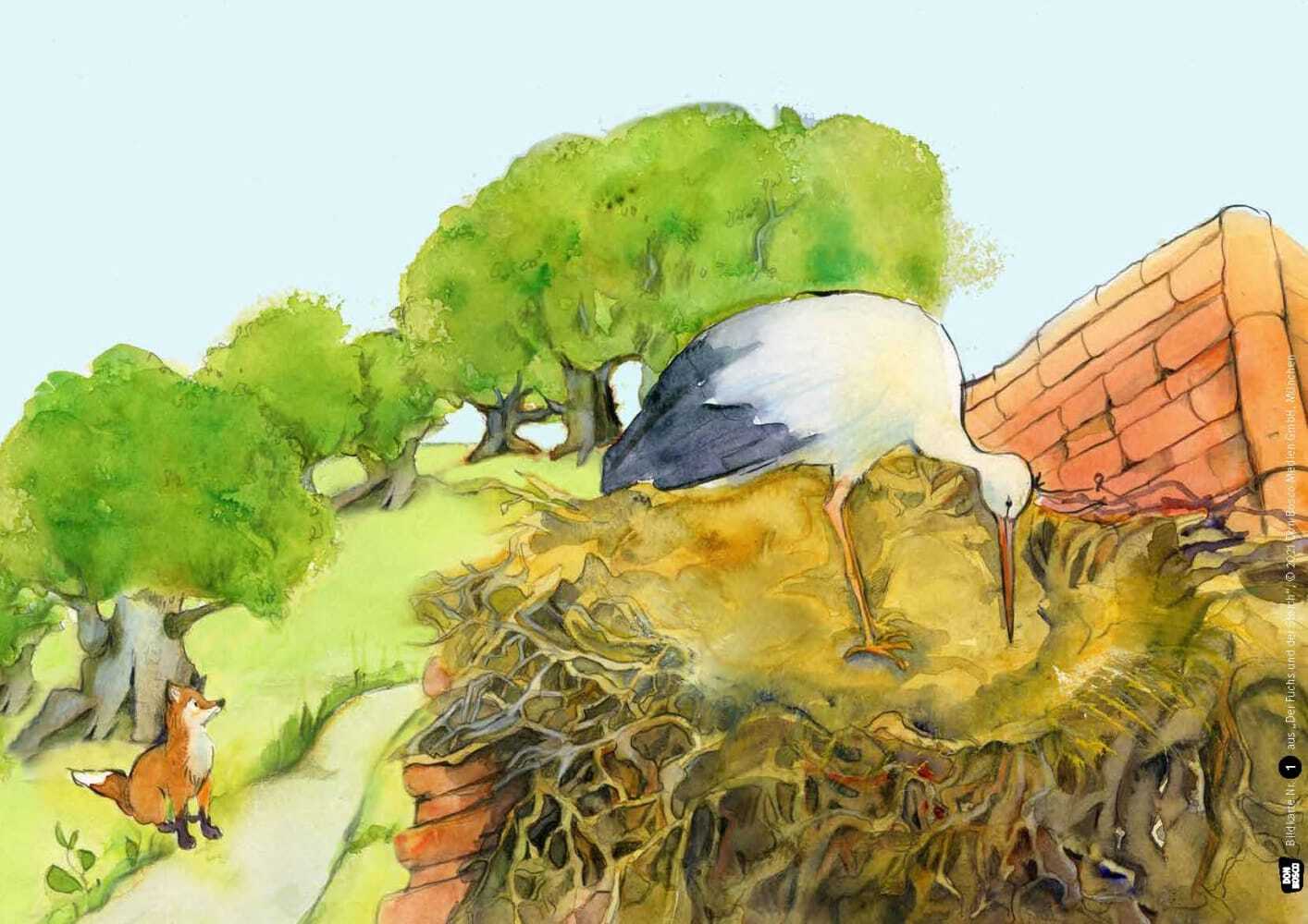 Der Fuchs und der Storch. Bildkarten-Set fürs Kamishibai. Mit dem Kamishibai Fabeln in der Grundschule entdecken: Der Fuchs und der Storch Der Fuchs ist eifersüchtig: Während er den Winter frierend in seinem Bau verbracht hat, ist sein Nachbar der Storch mit s...
