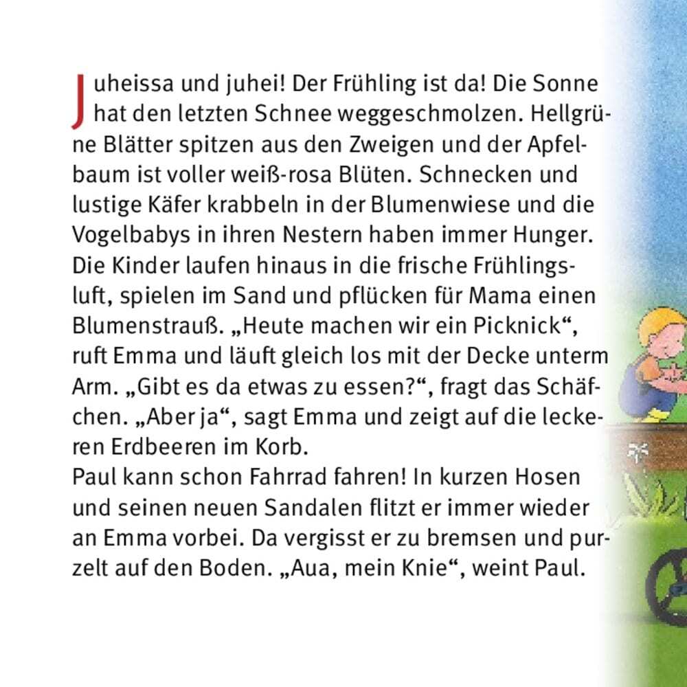 Emma, Paul und das Kuscheltier "Schäfchen" erleben die vier Jahreszeiten. Mit Emma, Paul und Emmas Schäfchen machen unsere jungen Bilderbuch-Leserinnen eine Reise durch die vier Jahreszeiten: Vogelgezwitscher und zarter Blütenduft beim ersten Picknick im Frühj...
