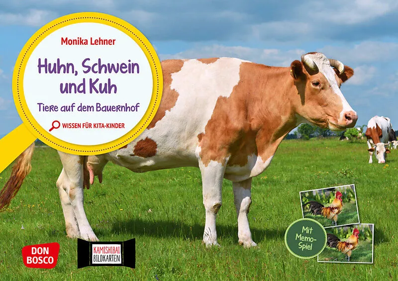 Bauernhoftiere. Kamishibai-Set & Memo-Spiel. Ab drei Jahren. Was gackert, grunzt und muht denn hier? Bauernhoftiere mit dem Kamishibai entdecken Welche Farben können Kühe haben? Wie nennt man ein männliches Schaf? Was wird aus Entendaunen gemacht? Kinder s...