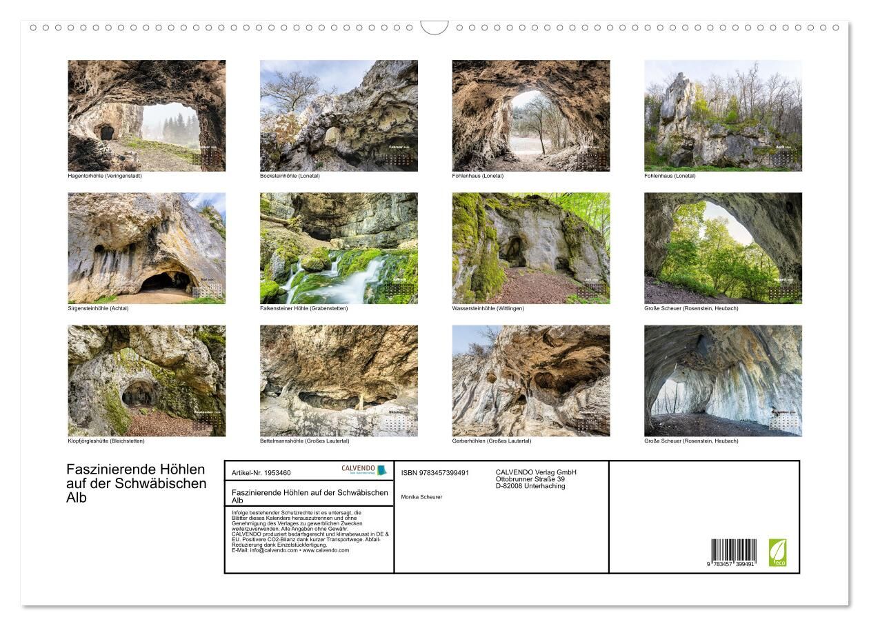 Faszinierende Höhlen auf der Schwäbischen Alb (Wandkalender 2026 DIN A2 quer), CALVENDO Monatskalender