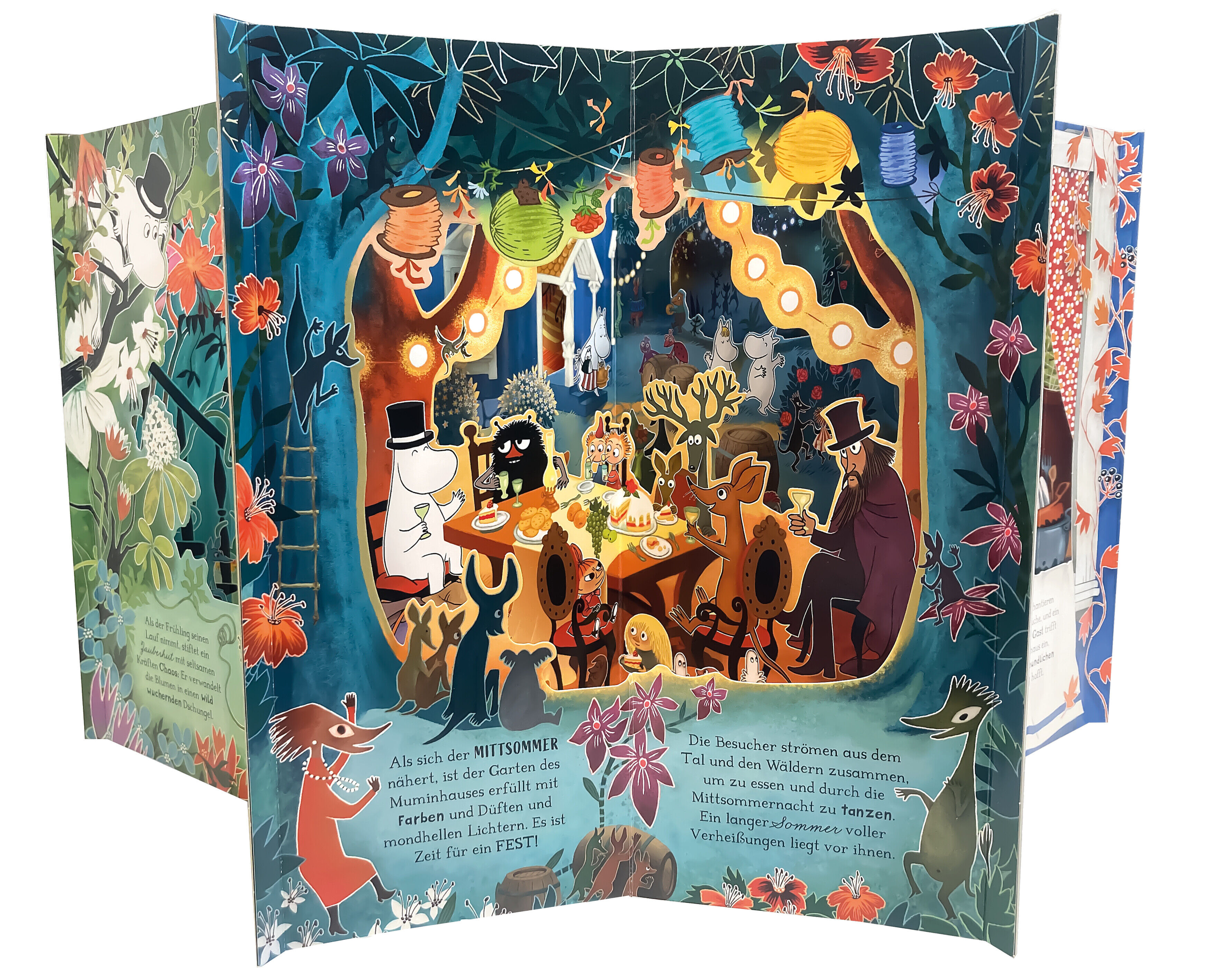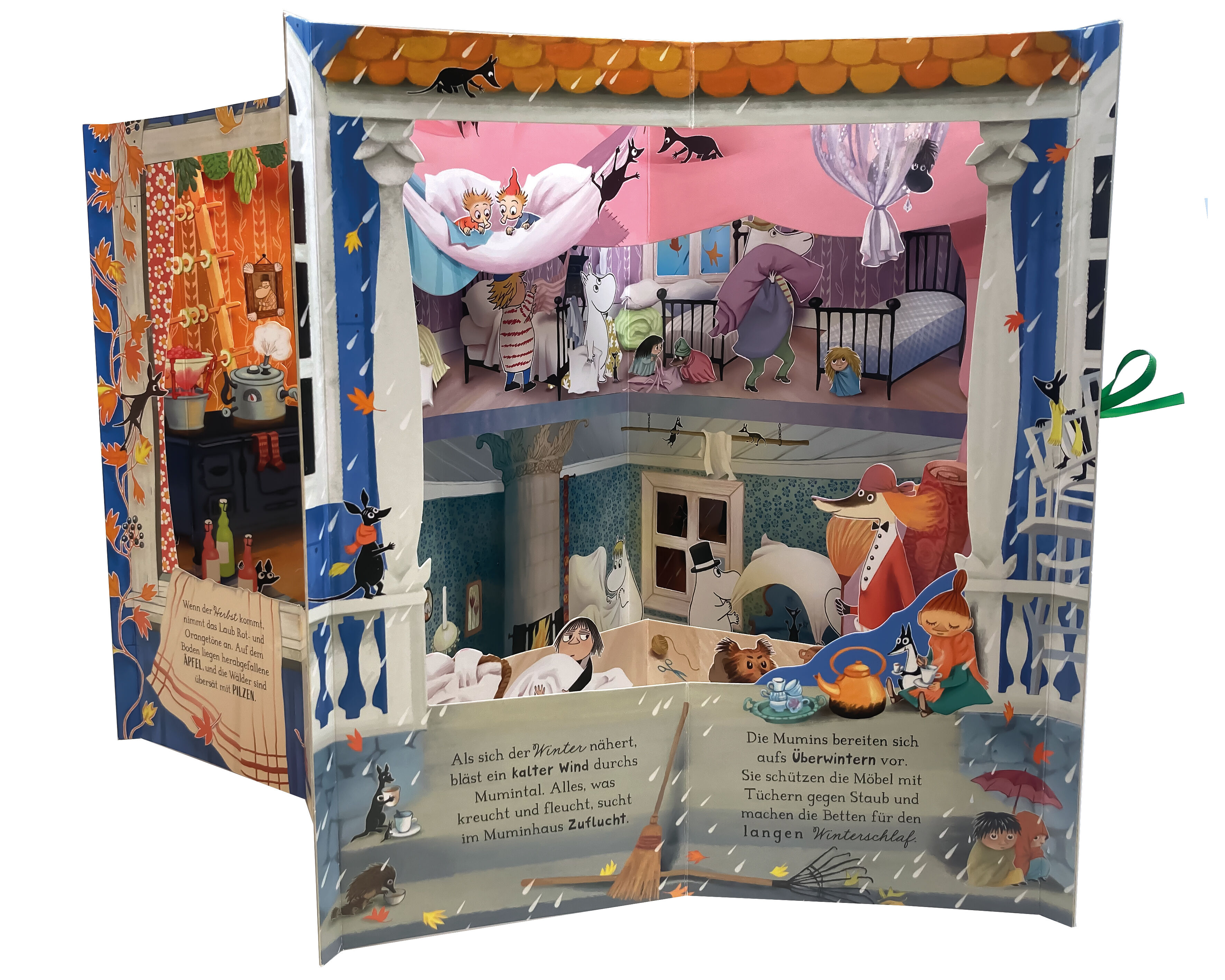 Im Muminhaus durch die Jahreszeiten das außergewöhnliche Pop-up Karussellbuch Begleite die Mumins durch das ganze Jahr: Im Frühling öffnen sich bunte Blüten, im Sommer wärmt die Sonne das Tal, im Herbst tanzen die bunten Blätter und im Winter glitzert der Sch...