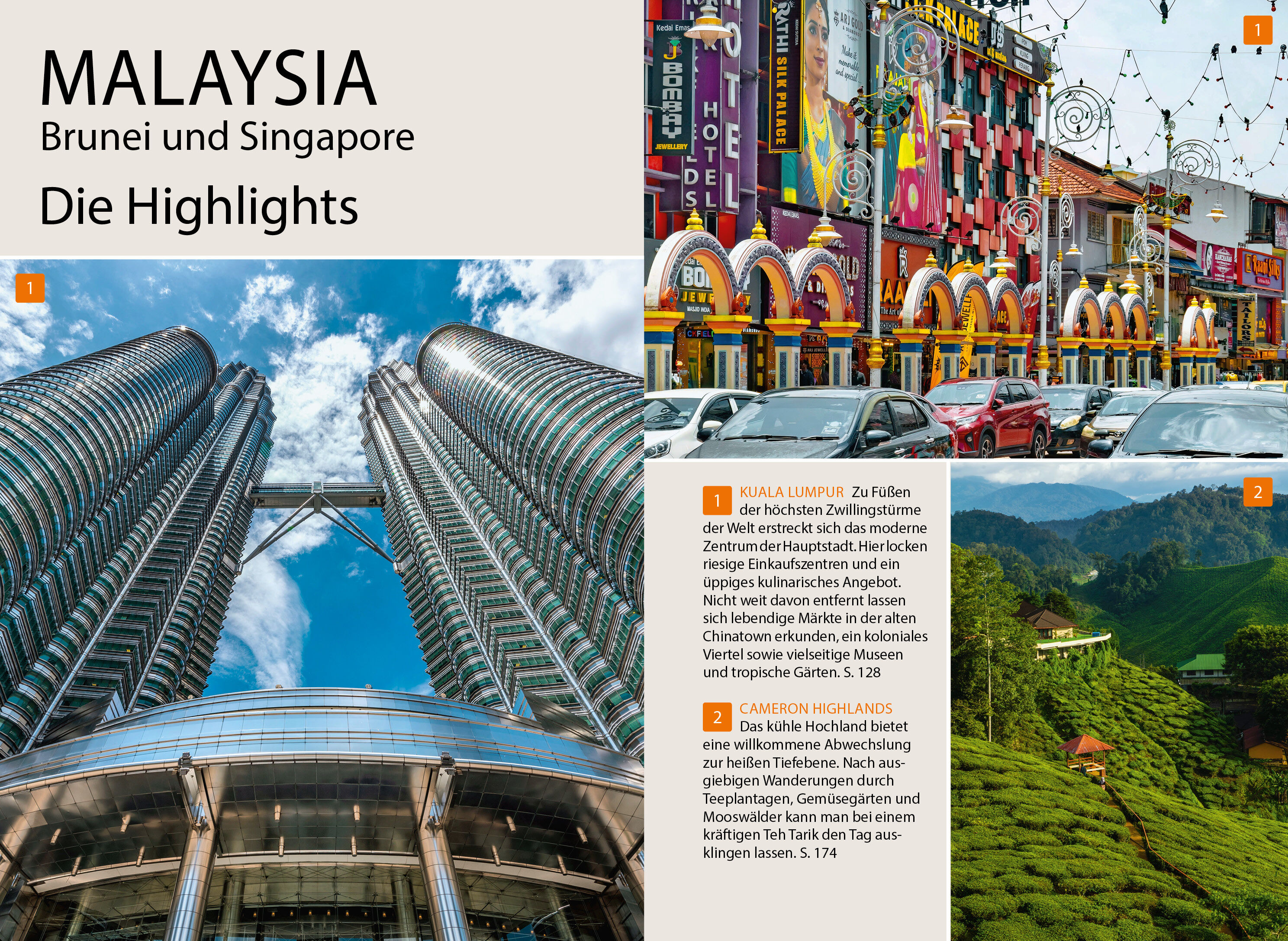 Asiatische Kultur und Tradition, Städte voller Sehenswürdigkeiten und Nachtleben, grüne Teeplantagen und seltene Wildtiere in Nationalparks, abwechslungsreiche Küche, endlose Strände und Inseln mit Korallenriffen Malaysia, Brunei und Singapore sind Ziele für ...