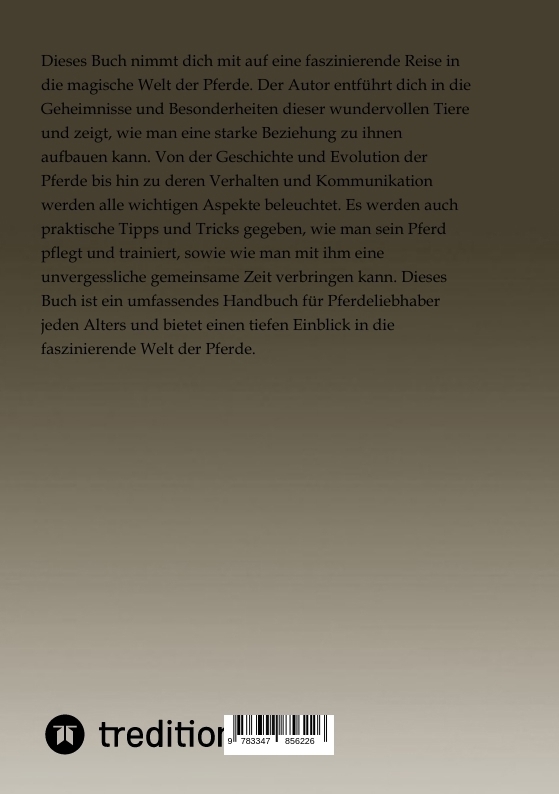 Dieses Buch nimmt dich mit auf eine faszinierende Reise in die magische Welt der Pferde. Der Autor entführt dich in die Geheimnisse und Besonderheiten dieser wundervollen Tiere und zeigt, wie man eine starke Beziehung zu ihnen aufbauen kann. Von der Geschichte...
