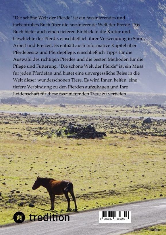 "Die schöne Welt der Pferde" ist ein faszinierendes und farbenfrohes Buch über die faszinierende Welt der Pferde. Das Buch bietet auch einen tieferen Einblick in die Kultur und Geschichte der Pferde, einschließlich ihrer Verwendung in Sport, Arbeit und Freizei...