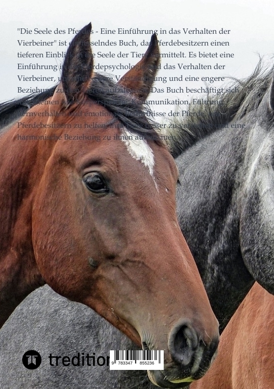 "Die Seele des Pferdes - Eine Einführung in das Verhalten der Vierbeiner" ist ein fesselndes Buch, das Pferdebesitzern einen tieferen Einblick in die Seele der Tiere vermittelt. Es bietet eine Einführung in die Pferdepsychologie und das Verhalten der Vierbeine...