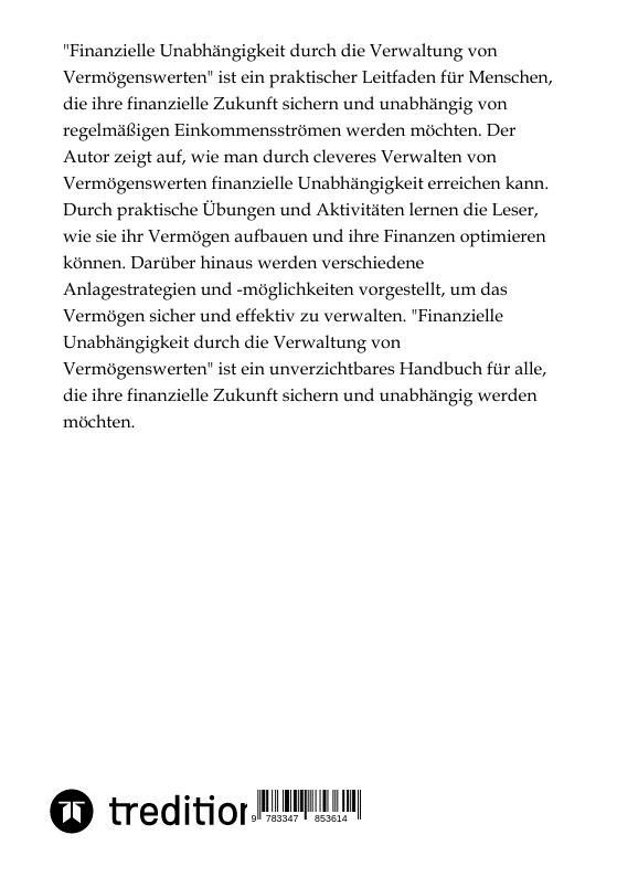 "Finanzielle Unabhängigkeit durch die Verwaltung von Vermögenswerten" ist ein praktischer Leitfaden für Menschen, die ihre finanzielle Zukunft sichern und unabhängig von regelmäßigen Einkommensströmen werden möchten. Der Autor zeigt auf, wie man durch cleveres...