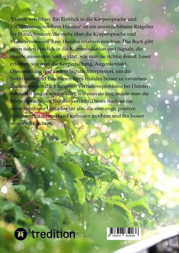 "Hunde verstehen: Ein Einblick in die Körpersprache und Verhaltensweisen Ihres Hundes" ist ein unverzichtbarer Ratgeber für Hundebesitzer, die mehr über die Körpersprache und Verhaltensweisen ihres Hundes erfahren möchten. Das Buch gibt einen tiefen Einblick i...