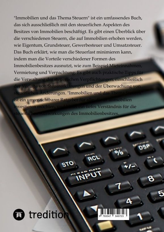"Immobilien und das Thema Steuern" ist ein umfassendes Buch, das sich ausschließlich mit den steuerlichen Aspekten des Besitzes von Immobilien beschäftigt. Es gibt einen Überblick über die verschiedenen Steuern, die auf Immobilien erhoben werden, wie Eigentum,...