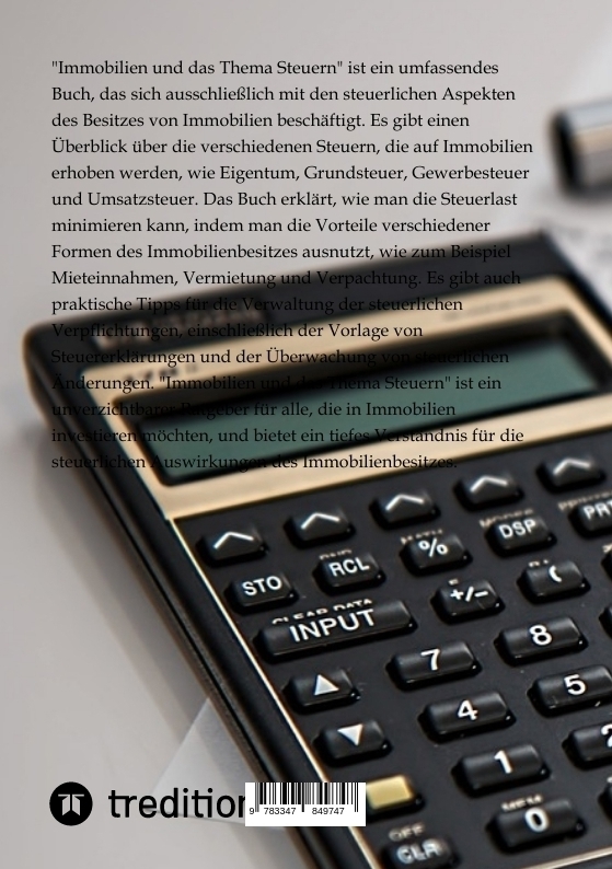 "Immobilien und das Thema Steuern" ist ein umfassendes Buch, das sich ausschließlich mit den steuerlichen Aspekten des Besitzes von Immobilien beschäftigt. Es gibt einen Überblick über die verschiedenen Steuern, die auf Immobilien erhoben werden, wie Eigentum,...