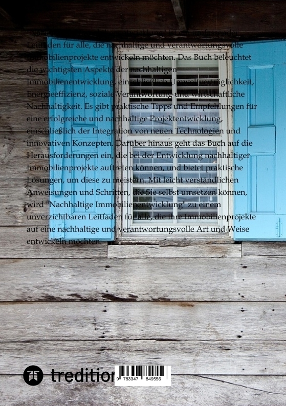 "Nachhaltige Immobilienentwicklung" ist ein umfassender Leitfaden für alle, die nachhaltige und verantwortungsvolle Immobilienprojekte entwickeln möchten. Das Buch beleuchtet die wichtigsten Aspekte der nachhaltigen Immobilienentwicklung, einschließlich Umwelt...