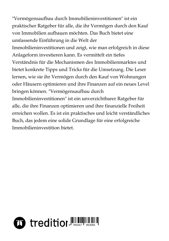 "Vermögensaufbau durch Immobilieninvestitionen" ist ein praktischer Ratgeber für alle, die ihr Vermögen durch den Kauf von Immobilien aufbauen möchten. Das Buch bietet eine umfassende Einführung in die Welt der Immobilieninvestitionen und zeigt, wie man erfolg...