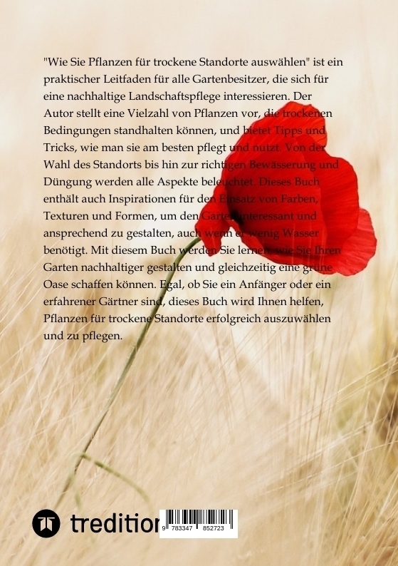 "Wie Sie Pflanzen für trockene Standorte auswählen" ist ein praktischer Leitfaden für alle Gartenbesitzer, die sich für eine nachhaltige Landschaftspflege interessieren. Der Autor stellt eine Vielzahl von Pflanzen vor, die trockenen Bedingungen standhalten kön...