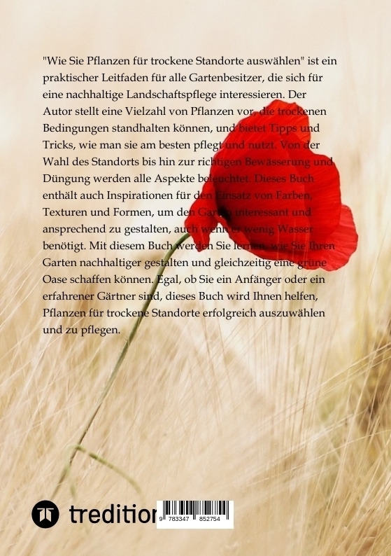 "Wie Sie Pflanzen für trockene Standorte auswählen" ist ein praktischer Leitfaden für alle Gartenbesitzer, die sich für eine nachhaltige Landschaftspflege interessieren. Der Autor stellt eine Vielzahl von Pflanzen vor, die trockenen Bedingungen standhalten kön...
