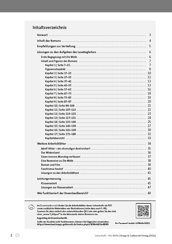 Unser Lehrerheft zum Lesebegleiter zu Die Welle von Morton Rhue enthält nicht nur die Lösungen der Aufgaben, sondern unterstützt bei der Planung eines abwechslungsreichen Deutschunterrichts, der Spaß an der Lektüre weckt und die Lesemotivation anregt. Das Unt...