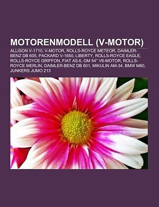 Quelle: Wikipedia. Seiten: 39. Kapitel: Allison V-1710, V-Motor, Rolls-Royce Meteor, Daimler-Benz DB 605, Packard V-1650, Liberty, Rolls-Royce Eagle, Rolls-Royce Griffon, Fiat AS.6, GM 54° V6-Motor, Rolls-Royce Merlin, Daimler-Benz DB 601, Mikulin AM-34, BMW M...Quelle: Wikipedia. Seiten: 39. Kapitel: Allison V-1710, V-Motor, Rolls-Royce Meteor, Daimler-Benz DB 605, Packard V-1650, Liberty, Rolls-Royce Eagle, Rolls-Royce Griffon, Fiat AS.6, GM 54° V6-Motor, Rolls-Royce Merlin, Daimler-Benz DB 601, Mikulin AM-34, BMW M60, Junkers Jumo 213, Junkers Jumo 211, Daimler-Benz DB 603, BMW VI, Junkers Jumo 210, Daimler-Benz DB 600, Hispano-Suiza 8, BMW S65, Rolls-Royce Kestrel, Curtiss D-12, BMW S85, Rolls-Royce Crecy, BMW N62, BMW M62, BMW M70, BMW M73, Curtiss V-1570, Rolls-Royce R, BMW N63, BMW M67, Keating TKR, BMW N73, Walter Sagitta, Mikulin AM-39, BMW N74. Auszug: Der Allison V-1710 war ein flüssigkeitsgekühlter V-12 Zylinder-Flugmotor der Allison Engine Company. Der einzige in den USA entwickelte Flugmotor dieser Bauart wurde aufgrund von Laderproblemen zunächst nicht verwendet. Nach zahlreichen Verbesserungen gab es in der Spätphase des Zweiten Weltkriegs eine große Nachfrage nach dem robusten und zuverlässigen Motor. Der Bedarf der United States Army Air Forces (USAAF) nach einem modernen, 750 kW (1000 PS) starken Flugmotor für eine neue Generation von stromlinienförmigen Bombern und Jagdflugzeugen, führte im Jahre 1929 zur Entwicklung eines glykolgekühlten Motors durch die von General Motors übernommene Allison Engine Company. Um die Produktion zu vereinfachen, konnte die Neukonstruktion mit verschiedenen Propellergetrieben und Ladern ausgerüstet werden. Dadurch war es möglich, auf nur einer Fertigungsstraße Motoren für alle Flugzeugtypen zwischen Jagdflugzeug und Bomber zu produzieren. Die Weltwirtschaftskrise verzögerte die Entwicklung bis zum ersten Test am 14. Dezember 1936 in einer Consolidated XA-11A. Der V-1710-C6 schloss am 23. April 1937 die 150-Stunden-Typenprüfung der US Army als erster 750-kW-(1000-PS)-Flugmotor ab. Der Motor wurde verschiedenen Flugzeugherstellern angeboten, was zum Einsatz in der Curtiss YP-37 führte. Ein erneuter Flugwettbewerb für Jagdflugzeuge hatte zur Folge, dass er als Antrieb für die Lockheed P-38, Bell P-39, Curtiss P-40 und die North American P-51A genutzt wurde. Die USAAF hatte beschlossen, zur Leistungssteigerung in großen Höhen ausschließlich auf Turbolader zu setzen. Sie glaubte, der Einbau von Turboladern würde es ihren Flugmotoren ermöglichen, die Leistung der europäischen Konkurrenten, die nur mechanische Lader (Kompressoren) verwendeten, zu übertreffen. Der hohe Bedarf an Metallen für Hochtemperaturlegierungen, vor allem Wolfram, führte während des Krieges zu Einschränkungen bei der Produktion von Turboladern. Schließlich reservierte die USAAF die Mehrzahl der Turbolader vor