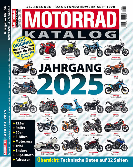Der neue MOTORRAD Katalog 2025 - das Standardwerk für alle Motorradfahrer. 260 Seiten prall gefüllt mit allen bekannten Neuheiten für die Saison 2025 und den Bestandsmodellen der Hersteller.