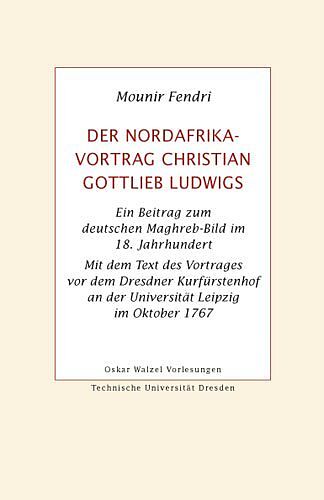 Mounir Fendris Vorlesung "Der Nordafrika-Vortrag Christian Gottlieb Ludwigs. Ein Beitrag zum deutschen Maghreb-Bild im 18. Jahrhundert" ist die siebente in der Reihe der Oskar-Walzel-Vorlesungen an der Technischen Universität Dresden. Der Band enthält neben de...