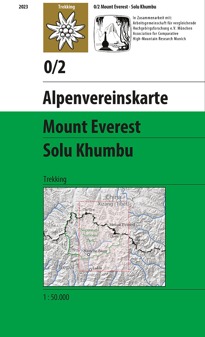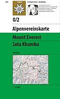 Topographische Karte 1:50.000 vom Gebiet um den Mount Everest, mehrfarbig, deailliert, mit Höhenlinien, Felsdarstellung, Schummerung.