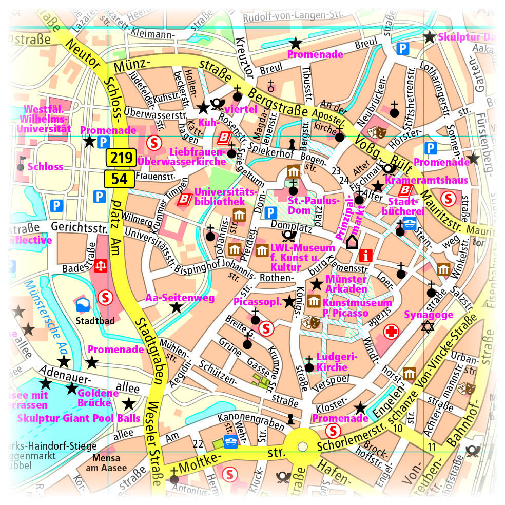 Stadtplan Münster: Stadt der Gegensätze Die junge und doch alte Studentenstadt Münster vereint den Charme der Moderne sowie ihre lange Geschichte zu einem einzigartigen Mix, den man erlebt haben muss. Keine Frage: Die Westfälische Metropole mit ihren zahlreich...