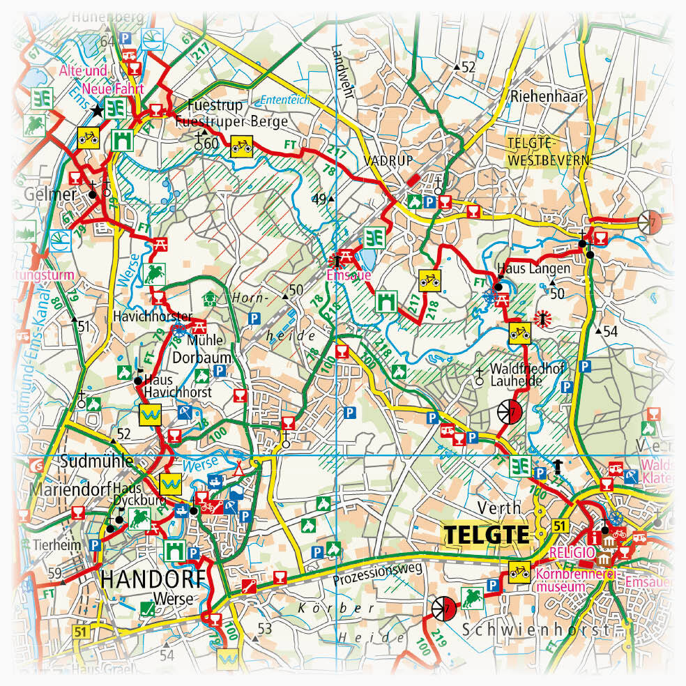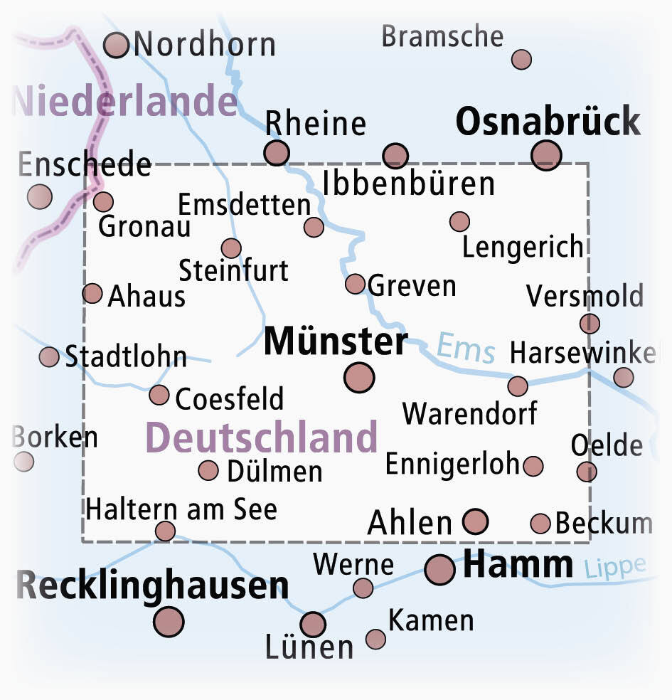 Im Münsterland herrschen für Radler paradiesische Zustände: Die flache, abwechslungsreiche Parklandschaft ist mit einem 4.500 km umfassenden Radwegenetz durchzogen, das perfekt ausgeschildert ist und sich sowohl für Tagestouren als auch längere Radurlaube eign...