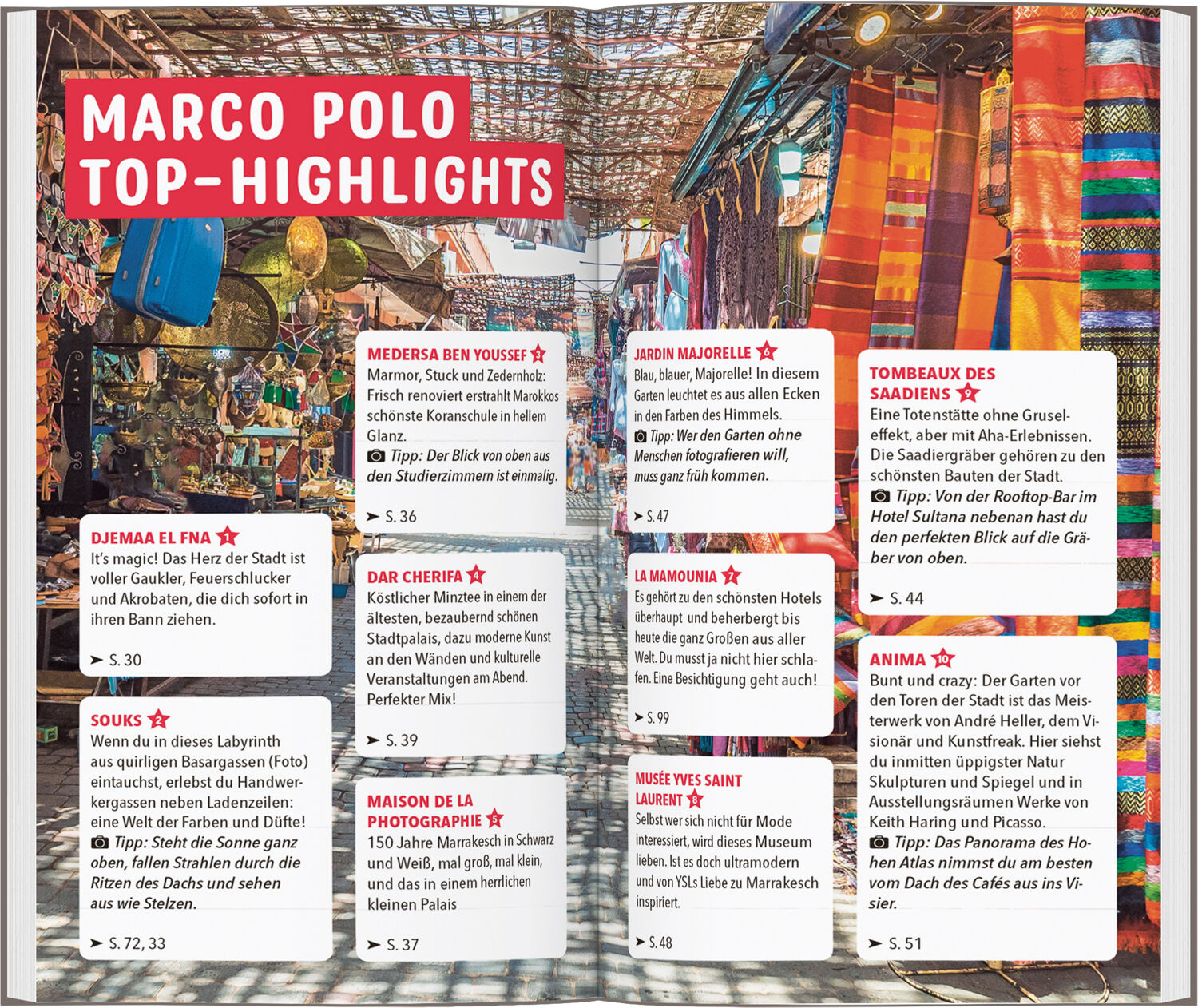 Urlaub wie in Tausendundeiner Nacht mit dem MARCO POLO Reiseführer Marrakesch Europäisch, orientalisch oder afrikanisch? In Marrakesch musst du dich nicht entscheiden! Flaniere zwischen Schlangenbeschwörern am Djemaa al Fna, bestaune die prunkvollen Paläste d...