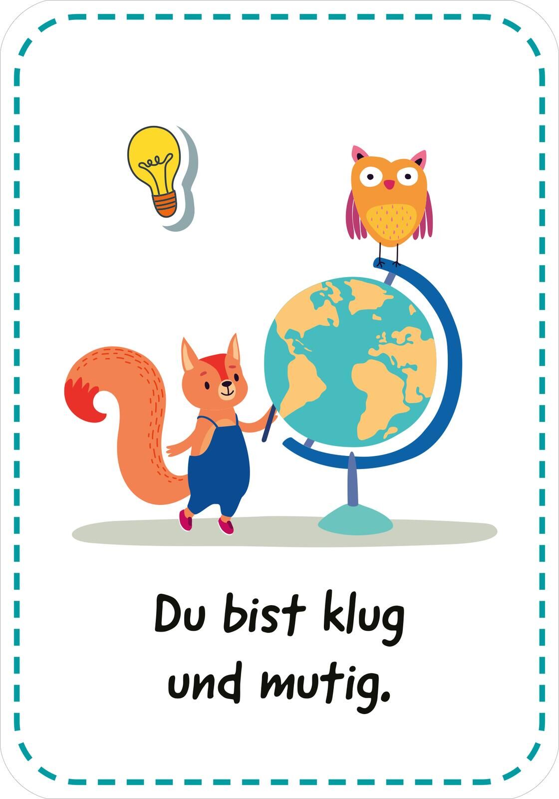 Kleine Mutmacher für die Schule In dieser bunt gestalteten Kartenbox befinden sich 50 Affirmationskarten für Kinder. Perfekt geeignet als Mutmacher für den Schulstart, aber auch für andere Situationen, wie den Eintritt in den Kindergarten, einen aufregenden A...