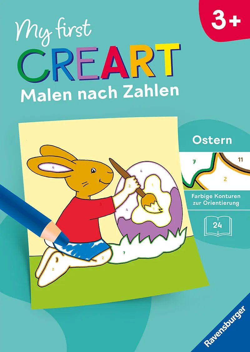Oster-Motive malen wie die Profis mit diesem Malbuch kein Problem! Kinderleicht Ausmalen - dieses Malbuch enthält 24 niedliche Motive rund um das Thema Ostern: Küken, Osterhasen, bunte Eier. Kinder ab 3 Jahren malen die nummerierten Felder aus, die farbigen Ko...