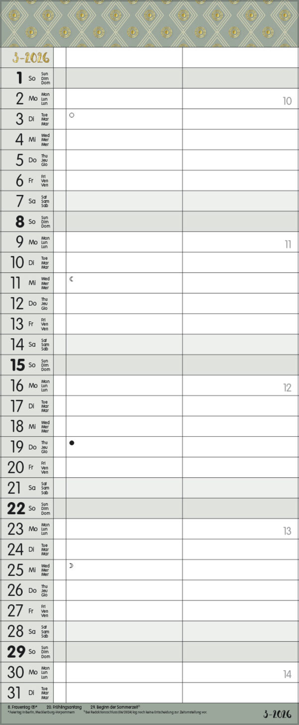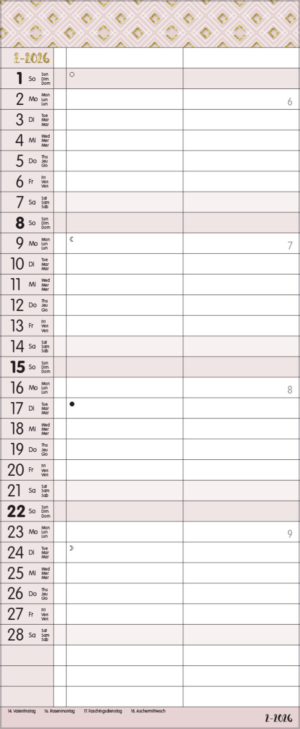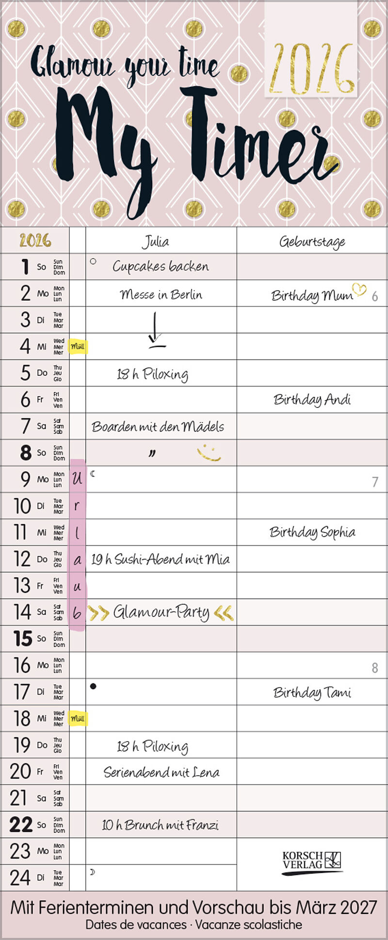 Korsch Familienkalender - Produktmerkmale Übersichtlicher Familienplaner für bis zu 2 Personen; sehr stabile Rückwand; 19 x 46 cm Terminkalender mit viel Platz für Eintragungen, ohne störende Bilder in den Spalten leichte Beschreibbarkeit, auch mit Bunt- und B...