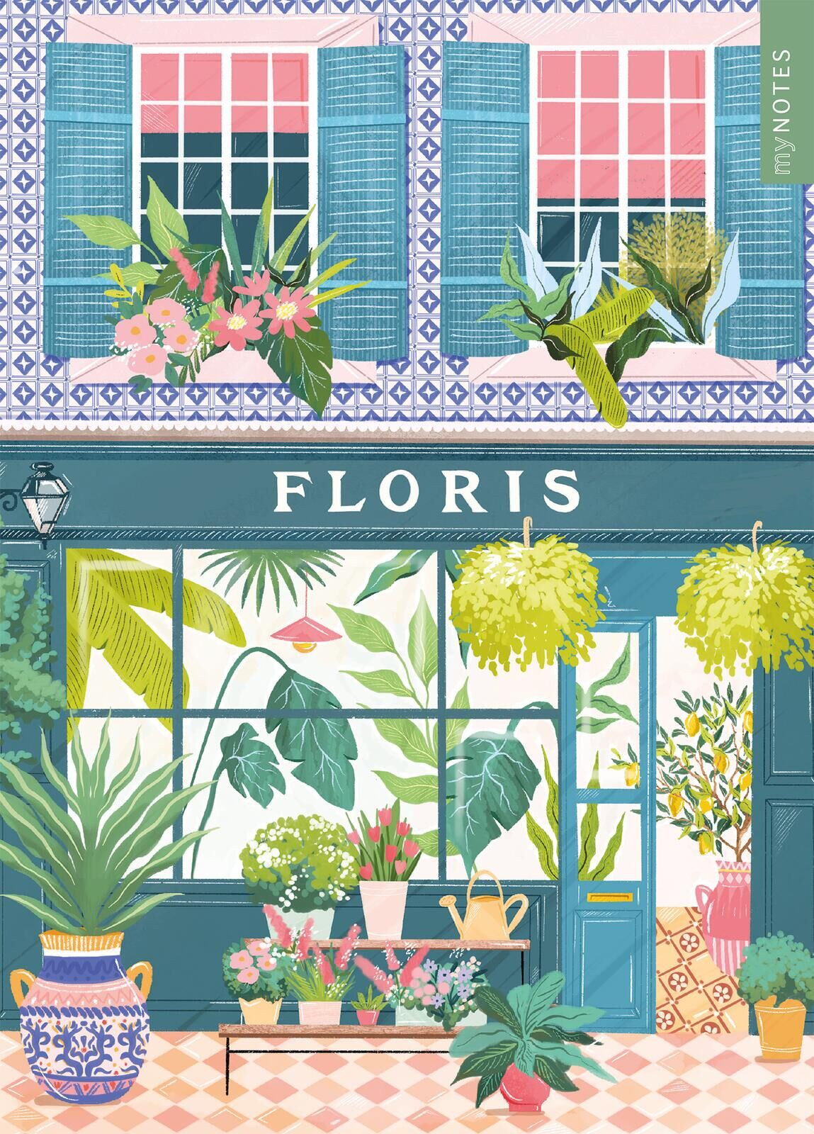 Das Cover zeigt einen liebevoll gestalteten Blumenladen im typisch britischen Stil und weckt die Lust, sofort mit dem Schreiben, Skizzieren oder Planen zu beginnen.