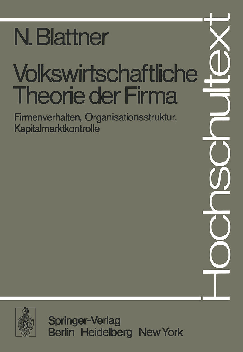 Mit diesem kleinen Band wird der Versuch unternommen, den Studenten der Volkswirtschaft einen Einblick in die neueren Entwicklungen in der Theorie der Firma zu geben. Es besteht zweifellos eine groBe Kluft zwischen der Firma, wie sie irn traditionellen Lehrbuc...