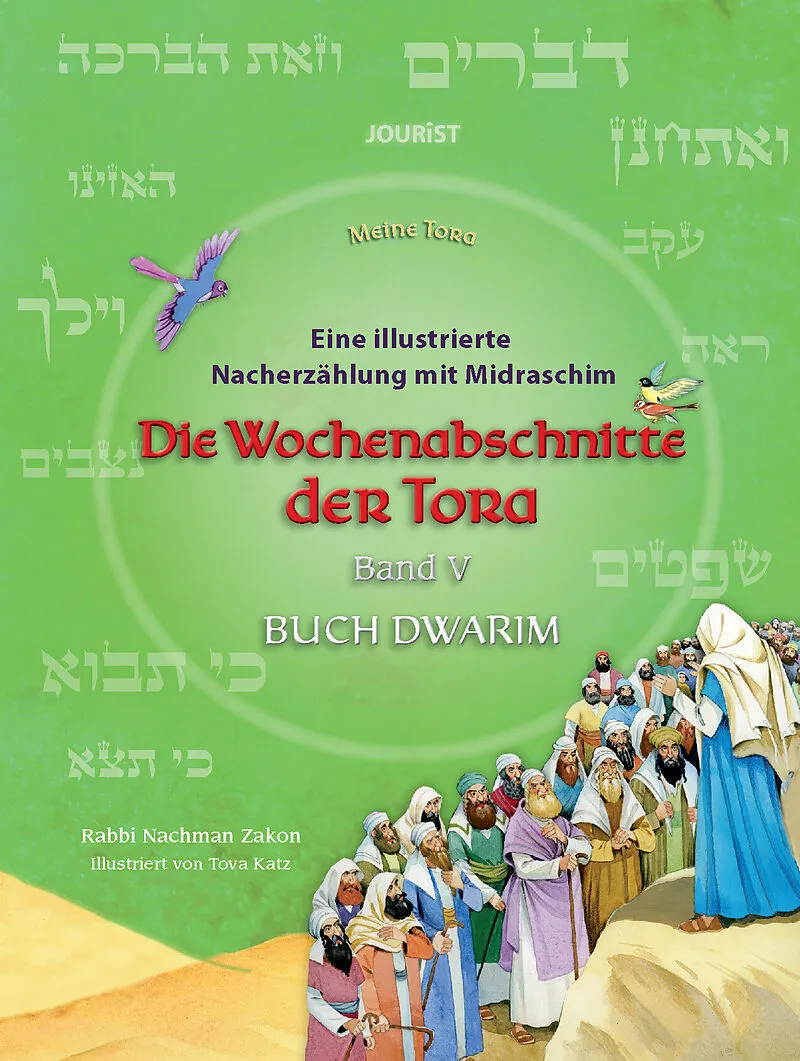 In dem für Kinderaugen so ansprechend illustrierten Werk Die Wochenabschnitte der Tora (5 Bände) wendet sich Rabbiner Nachman Zakon vor allem aber nicht nur! an ganz junge Leser und Leserinnen. Sein eindringlich erklärender Erzählton ermöglicht es ihm auf fasz...In dem für Kinderaugen so ansprechend illustrierten Werk Die Wochenabschnitte der Tora (5 Bände) wendet sich Rabbiner Nachman Zakon vor allem aber nicht nur! an ganz junge Leser und Leserinnen. Sein eindringlich erklärender Erzählton ermöglicht es ihm auf faszinierende Art und Weise, seinem jungen Lesepublikum die wöchentlichen Tora-Abschnitte (Paraschot) sehr nahe zu bringen. Dwarim bedeutet, aus dem Hebräischen übersetzt, Worte. Gemeint sind die Worte, sind die Reden Mosche Rabbeinus, die er unmittelbar vor dem Einzug der Juden ins gelobte Land noch einmal an eben diese gerichtet hat. Viele Weisen nennen das Buch Dwarim Mischne Tora - Wiederholung der Tora. Beim Wiederholen lassen sich neue Erkenntnisse gewinnen, lässt sich bereits Gelesenes wieder auffrischen. Mosche wiederholt in Dwarim in seinen Worten und für eine nachgeborene Generation viele Gesetze und Erzählungen aus der Zeit der vierzigjährigen Wüstenwanderung und auch der davor. Er lehrt uns, zu glauben und zu verstehen, dass Haschem der einzige G'tt ist und dass wir auf Ihn hören, Ihn fürchten, Ihn lieben und den Glauben an Ihn nie verlieren sollen. Mosches Blick geht weit in die Zukunft. So erfahren wir beispielsweise, wo der Beit HaMikdasch gebaut werden wird. Rabbi Nachman Zakon ergänzte seine Erzählungen mit lehrreichen Einblicken in die die Schrift begleitenden Midraschim. In rechten und linken Randspalten finden sich Erklärungen und Erläuterungen. Interessante Fragen, die sich stellen, werden ebenfalls in den Randspalten beantwortet, hebräische Wörter entlang ihrer Etymologie verständlich und nachhaltig erklärt. Um nahe bei der Originalsprache zu bleiben, wurde bei den wenigen aber für die Authentizität des Textes wichtigen hebräischen Worte, die in den Erzählungen aus den Paraschot mit einflossen, das Genus übernommen und damit auch der entsprechende (deutsche) Artikel. Ähnlich wurde mit den (hebräischen) Namen verfahren. Empfohlen werden Rabbiner Nachman Zakons Erzählungen zu den Wochenabschnitten der Tora, die in einer fünfbändigen Gesamtausgabe vorliegen, Kindern ab etwa acht Jahren. Wobei sie durch ihren durchdachten, vielschichtigen Zugang dazu geeignet sind, beim Heranwachsen stetig zu begleiten und dies durchaus auch im Schulunterricht an unseren jüdischen Schulen. Aber auch Eltern wie Großeltern sind herzlichst dazu eingeladen, einen Blick und mehr in diese Bücher zu werfen. Sie werden viel Neues erfahren. Kurz: Rabbi Nachman Zakons Reise durch Tora und Midrasch ist etwas für Menschen von 8 bis 120.