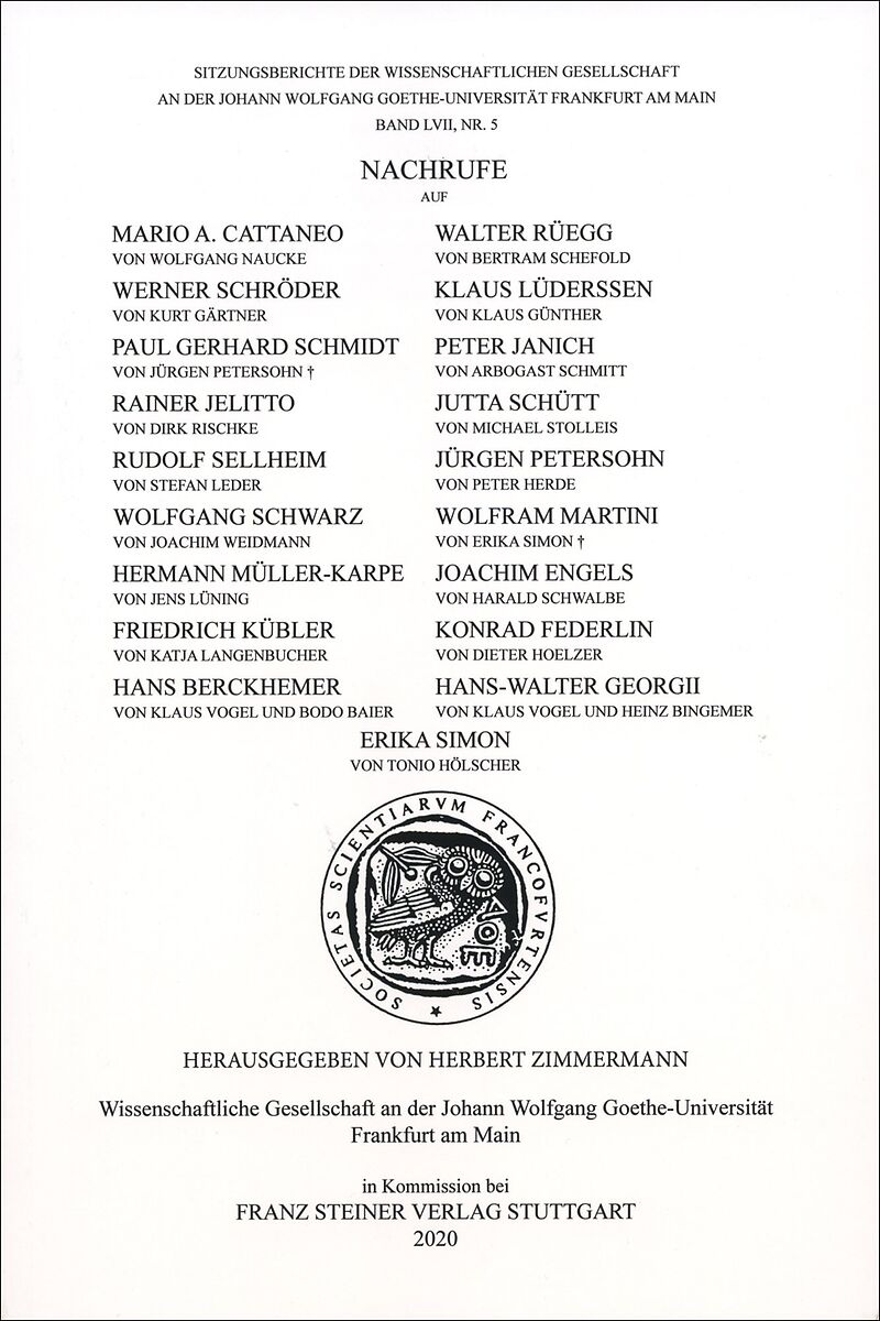 Die Wissenschaftliche Gesellschaft an der Johann Wolfgang Goethe-Universität blickt auf eine über hundertjährige Geschichte zurück. Sie wurde und wird getragen von hervorragenden Gelehrten aus sowohl dem geistes- und gesellschaftswissenschaftlichen als auch d...