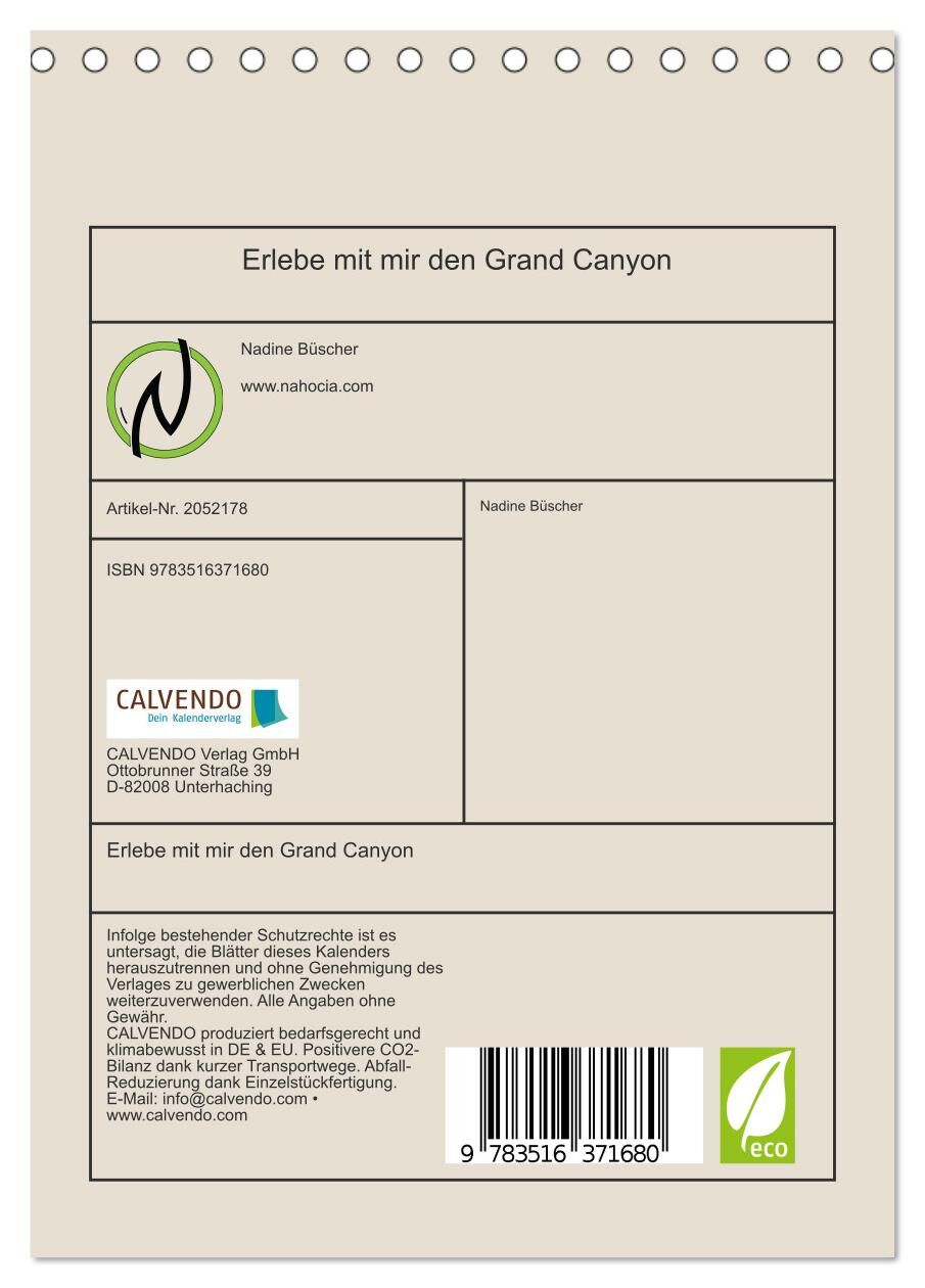 Erlebe mit mir den Grand Canyon (Tischkalender 2026 DIN A5 hoch), CALVENDO Monatskalender