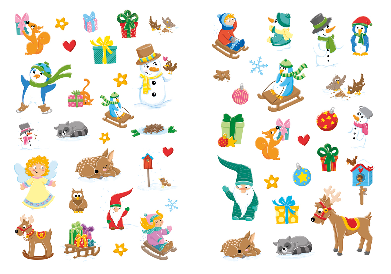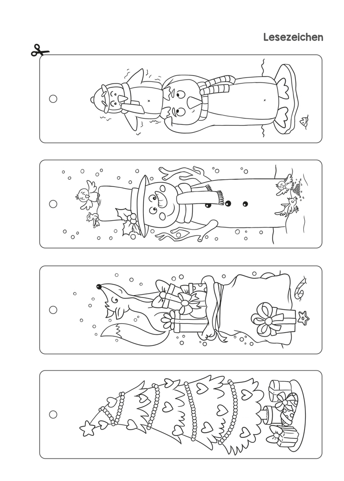 Ein 3D-Weihnachtsbaum zum Aufstellen, eine Postkarte mit Schlittschuh laufenden Pinguinen, ein Lesezeichen mit fröhlichem Schneemann und ganz viele schimmernde Glitzer-Sticker finden sich in diesem winterlich-weihnachtlichen Bastelheft. Einfach die Motive bunt...
