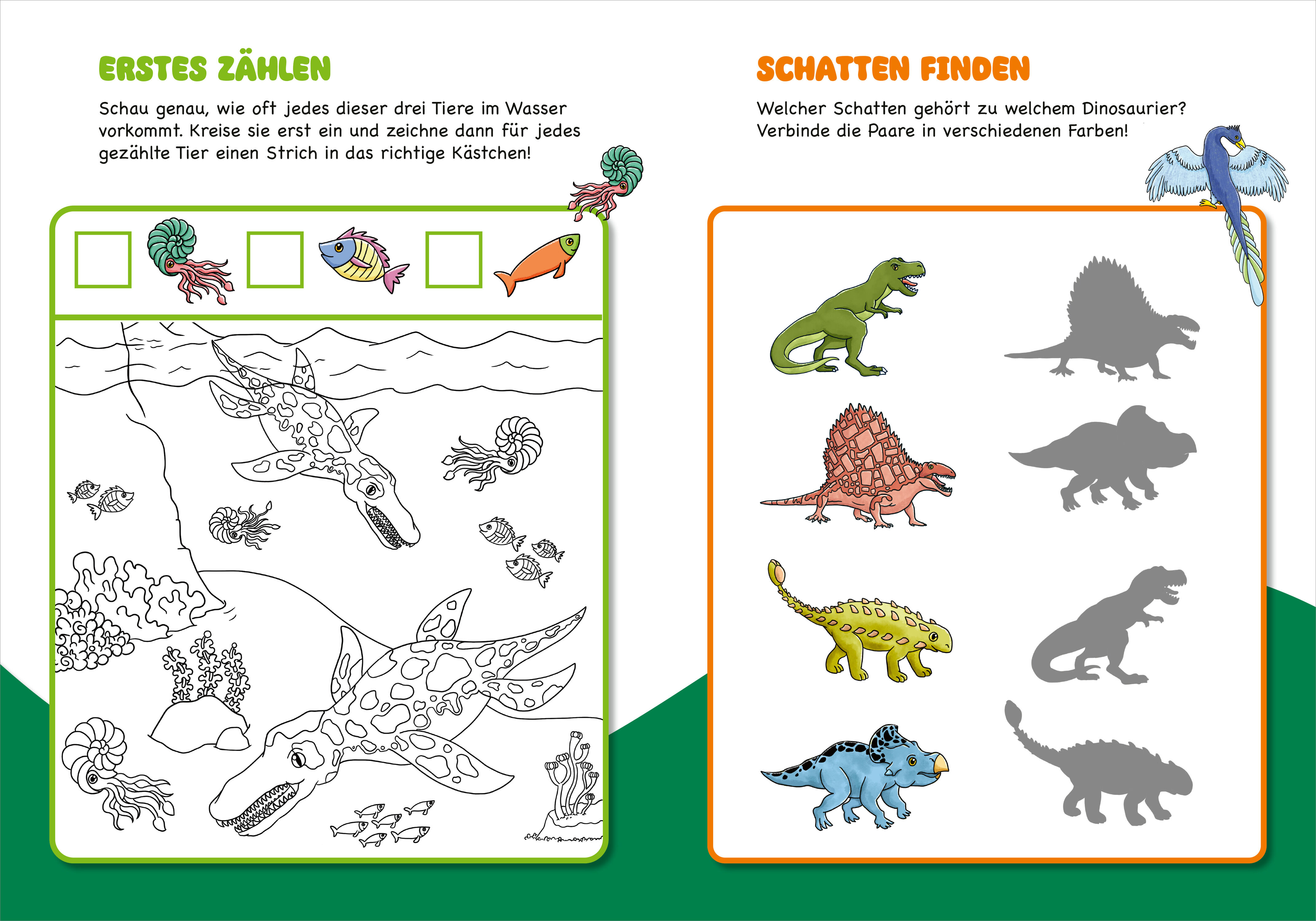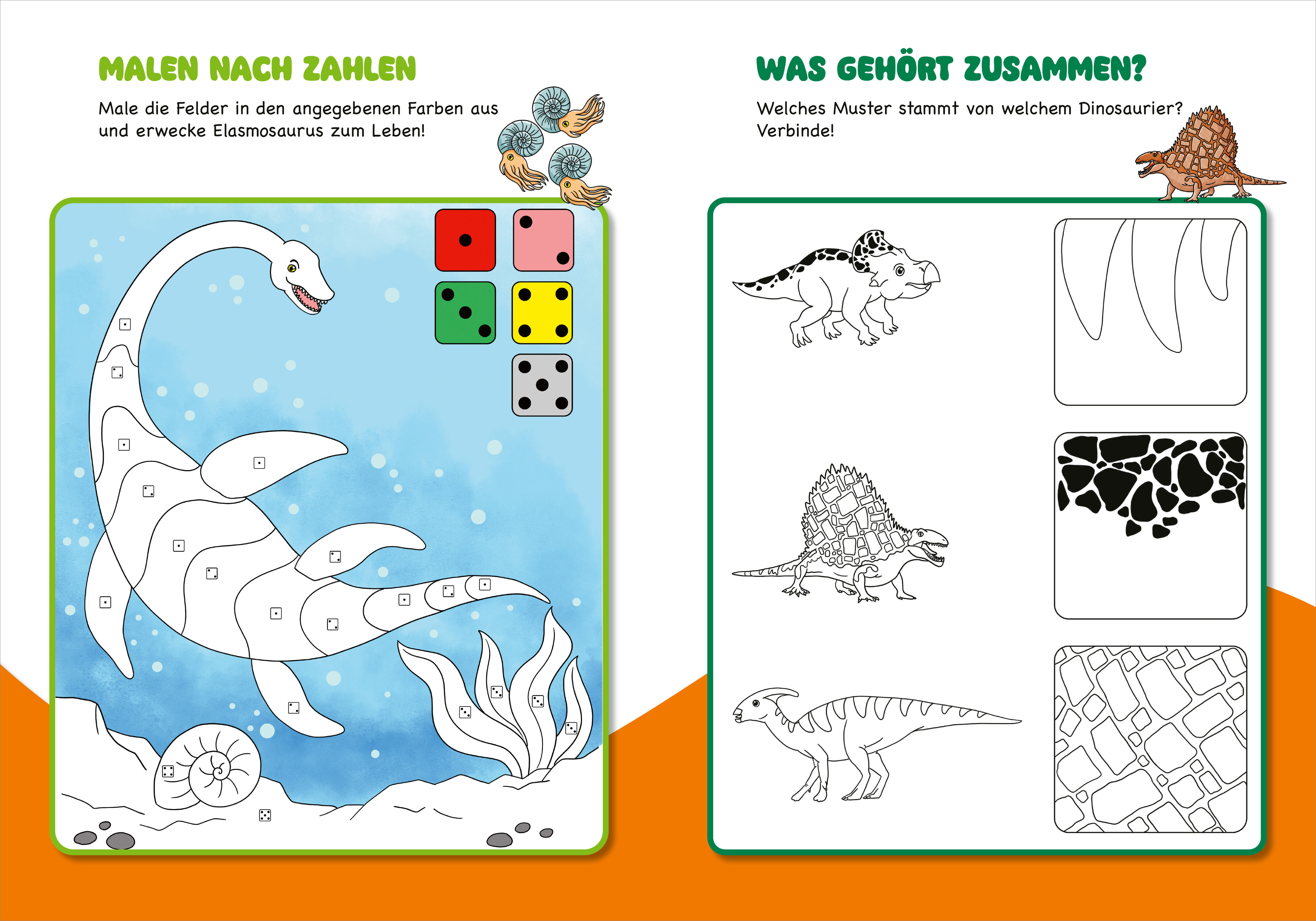 Die Dinos sind los! Bunte Rätsel und fröhliche Malbilder sorgen für viel Spaß und Unterhaltung für Kindergartenkinder. Kleine und große Dinos liefern coole Aufgaben wie Sudokus, Labyrinthe und Malen nach Farben. Durch abgerundete Ecken und eine Fadenheftung oh...