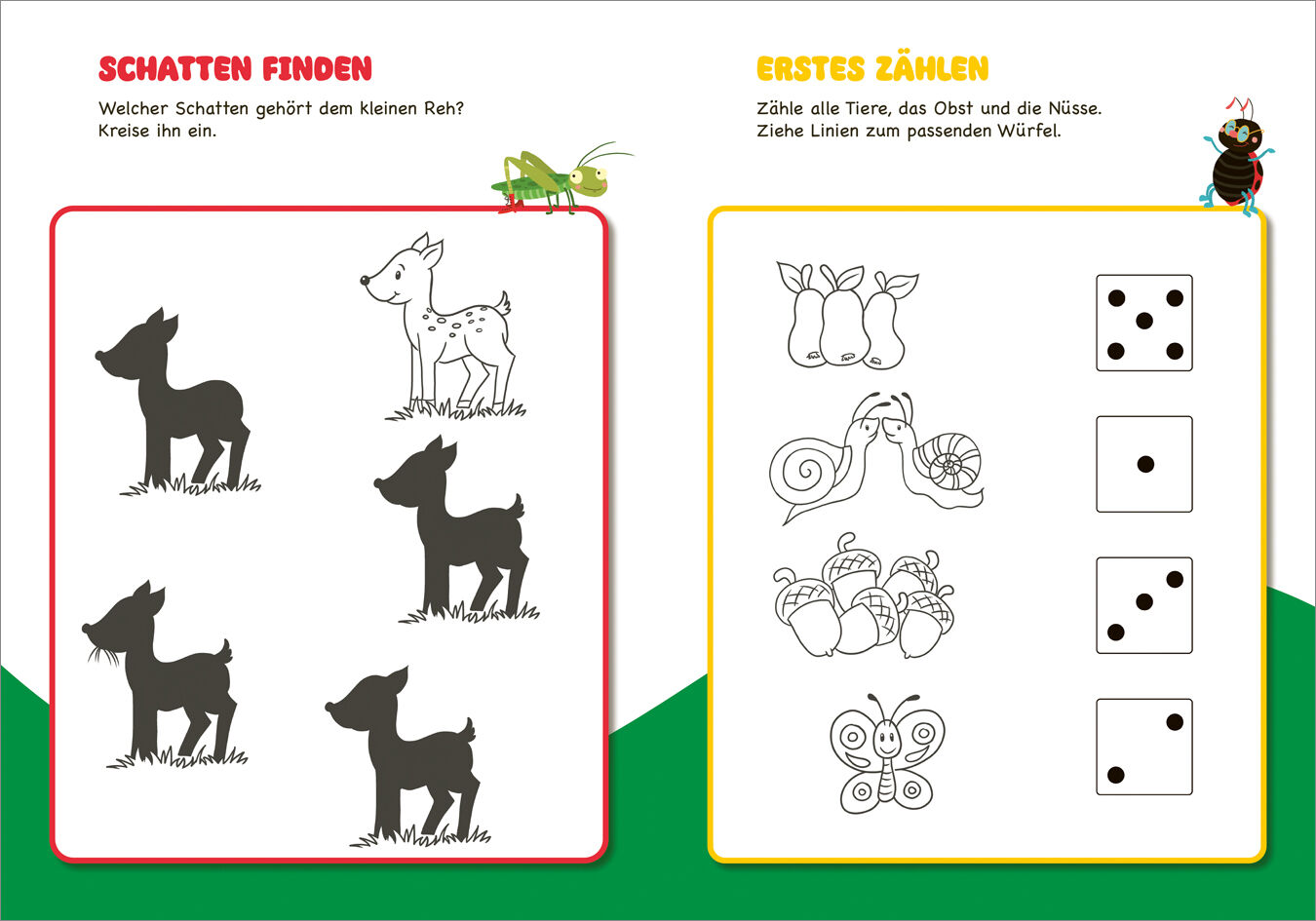 In diesem Mal- und Rätselheft dreht sich alles um die Natur. Spure nach, wie die Blätter vom Baum heruntersegeln. Welcher Schatten gehört zum abgebildeten Rehkitz? Wie kann man Schritt für Schritt einen Schmetterling zeichnen? Findet die Schnecke durch das Lab...