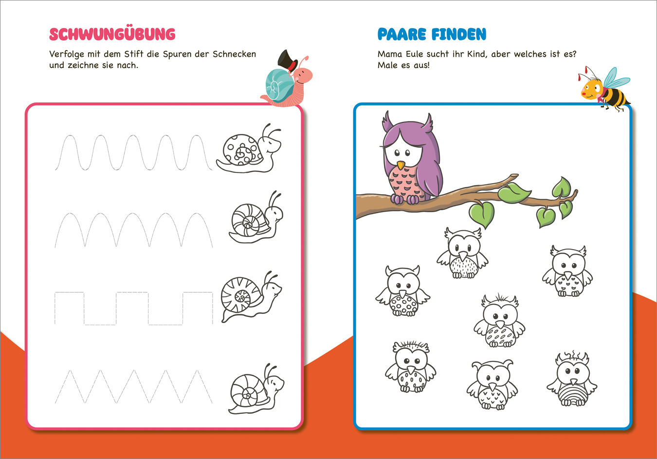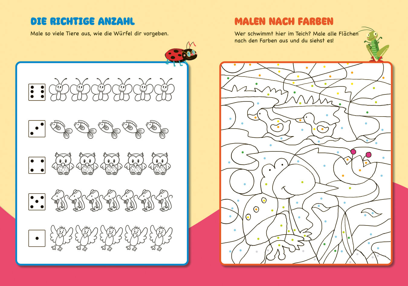 Hier kommt ganz viel Mal- und Rätselspaß für kleine Tierfreunde! Wie kann man Schritt für Schritt einen Hasen zeichnen? Welches Eulenkind gehört zur Eulenmama? Welchen Weg muss der kleine Fuchs zurück zum Bau nehmen? Unter Wasser haben sich 5 Unterschiede vers...