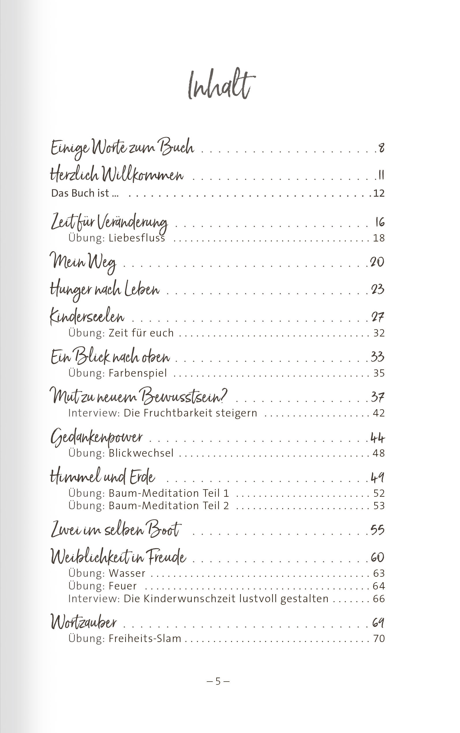 "Du darfst es nur nicht zu sehr wollen, dann klappt es schon!" - Können Sie diesen Satz auch nicht mehr hören? Schwanger zu werden ist für viele Frauen der größte Wunsch in ihrem Leben. Doch Babys kommen nicht auf Bestellung. Sie haben keine Lust auf Druck und Terminstress - und streiken. Ein unerfüllter Kinderwunsch ist deshalb für jede Frau und jedes Paar die Chance auf eine geistige und seelische Neuorientierung: Sie dürfen lernen, sich für Dinge zu öffnen, die nur über das Herz funktionieren und nicht mit dem Verstand wahrgenommen werden können. Die Kinderwunschberaterin und ehemalige Betroffene Namiah Bauer baut als Botschafterin eine Brücke zwischen der werdenden Mama und ihrem ungeborenen Kind. Sie erklärt leicht verständlich, wie Sie mit Ihrem Wunschkind in Kontakt treten und es in Ihr Leben einladen können. Liebevolle Übungen und wirksame Affirmationen unterstützen Sie dabei, in die Stille zu gehen und die Kinderseele zu fühlen. - Einfühlsame Begleitung während der Kinderwunschzeit, aber auch in Trauerphasen bei Fehl- und Totgeburten - Praktisches 21-Tage-Programm "Zeit für die Liebe", um den Blickwinkel zu verändern und die eigene Welt größer zu machen - Inspirierende Mutmacher-Interviews rund um Kinderwunsch, Muttersein und Weiblichkeit