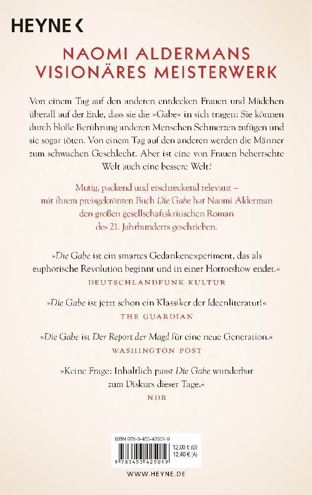 Wenn Ohnmacht zur Macht wird - die Zukunft gehört den Frauen Von einem Tag auf den anderen entdecken Frauen auf dem ganzen Planeten, dass sie »die Gabe« in sich tragen. Durch bloße Berührung können sie anderen Menschen schreckliche Schmerzen zufügen und sie so...