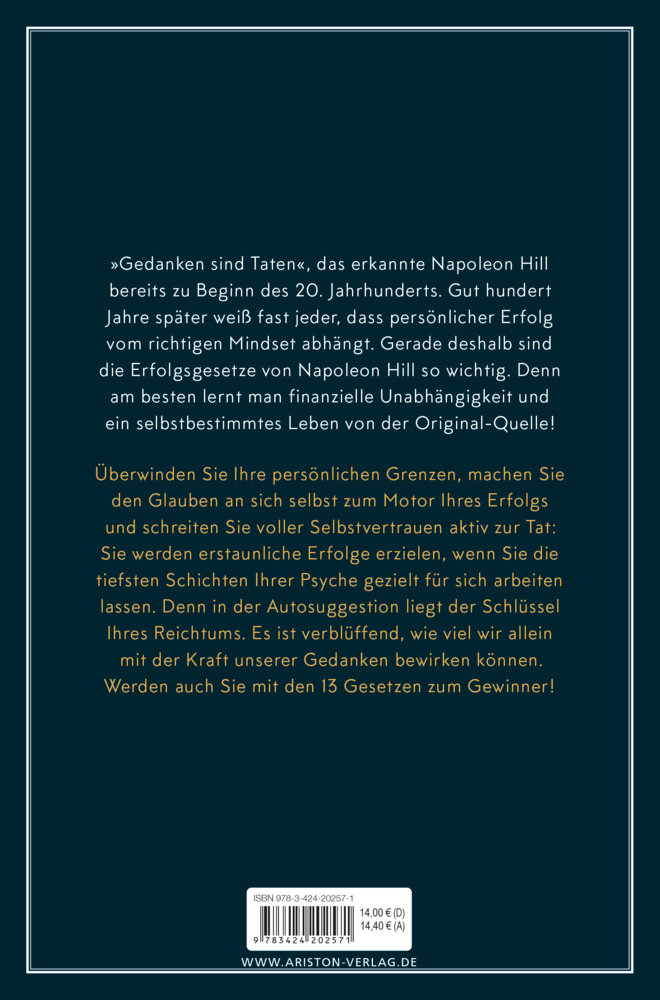 »Gedanken sind Taten«, das erkannte Napoleon Hill bereits zu Beginn des 20. Jahrhunderts. Gut hundert Jahre später weiß fast jeder, dass persönlicher Erfolg vom richtigen Mindset abhängt. Gerade deshalb sind die Erfolgsgesetze von Napoleon Hill so wichtig. Den...