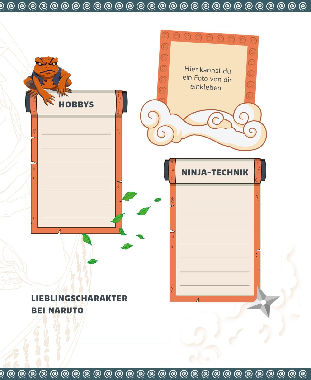 Kreativzeit mit Naruto, Sasuke und Sakura Dieses Eintragbuch richtet sich an alle Naruto-Fans, die schon immer Lust hatten, eigene Ninja-Geschichten aufzuschreiben. Es bietet genügend Platz für eigene Storys, Notizen, Wünsche und Geheimnisse, die dank des pra...